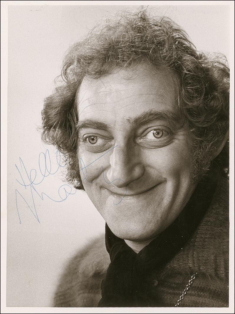 Bug-eyed British actor (1934–1982) best known for his comic roles in such films as Young Frankenstein and The Last Remake of Beau Geste. Glossy 6.5 x 8.5 photo of the smiling actor, signed in ballpoint, “Hello, Marty.” In fine condition, with a few mild surface dings and rubs. Accompanied by a full letter of authenticity from PSA/DNA.