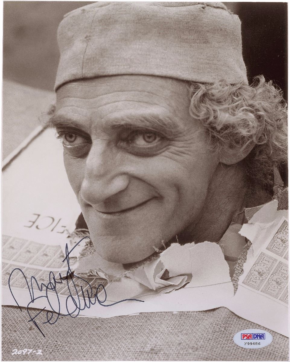 Glossy 7.25 x 9 photo of Feldman as Dagobert 'Digby' Geste in the 1977 film The Last Remake of Beau Gest, signed in black felt tip. Reverse bears movie captions and collector’s pencil notations, dating the signature to October 9, 1978. In fine condition, with evenly trimmed edges and a PSA/DNA label affixed to lower right corner. Accompanied by a certificate of authenticity from PSA/DNA.