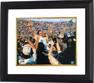 The 1972 Dolphins are the only National Football League team to win the Super Bowl with a perfect season. The 1972 Dolphins went 14–0 in the regular season and won all three post-season games, including Super Bowl VII against the Washington Redskins, to finish 17–0. The team remains the only NFL team to complete an entire season undefeated and untied from the opening game through the Super Bowl. This Don Shula Carry Off Horizontal 16x20 Photo is hand signed by 18 members of the 1972 Miami Dolphins SB VII Champs including: Garo Yepremian, Bob Kuechenberg, Marv Fleming, Jim Kiick, Marlin Briscoe, Doug Crusan, Curtis Johnson, Larry Ball, Otto Stone, Lloyd Mumphord, Howard Twilley, Mike Kolen, Al Jenkins, Jim Dunaway, Vern Den Herder, Hubert Ginn, Larry Seiple and Ed Jenkins. Leaf Authentics Hologram and Certificate of Authenticity from Athlon Sports. Custom White Mat and Premium Black Frame as shown.
