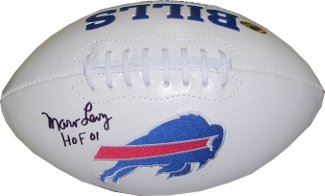 In 1987, Marv Levy's first full season with the Bills, the team returned to respectability with a 7–8 record and were in the playoff hunt throughout most of the season. The following season the team posted a 12–4 record and won the first of six AFC Eastern Division titles. With his high-powered “no-huddle” offense, Levy went on to lead his AFC championship team to four consecutive Super Bowl appearances. From 1988 through 1997, the Bills were first in the AFC in winning percentage and second only to the San Francisco 49ers in the NFL. Levy, the winningest coach in Bills’ history, recorded a 112–70 regular season record and was 11–8 in the playoffs during his eleven seasons with the Bills. He was named NFL Coach of the Year in 1988 and AFC Coach of the Year in 1988, 1993, and 1995. Marv Levy has hand autographed this Buffalo Bills Logo Football with HOF 01 Inscription. MAB Hologram and Certificate of Authenticity from Athlon Sports.