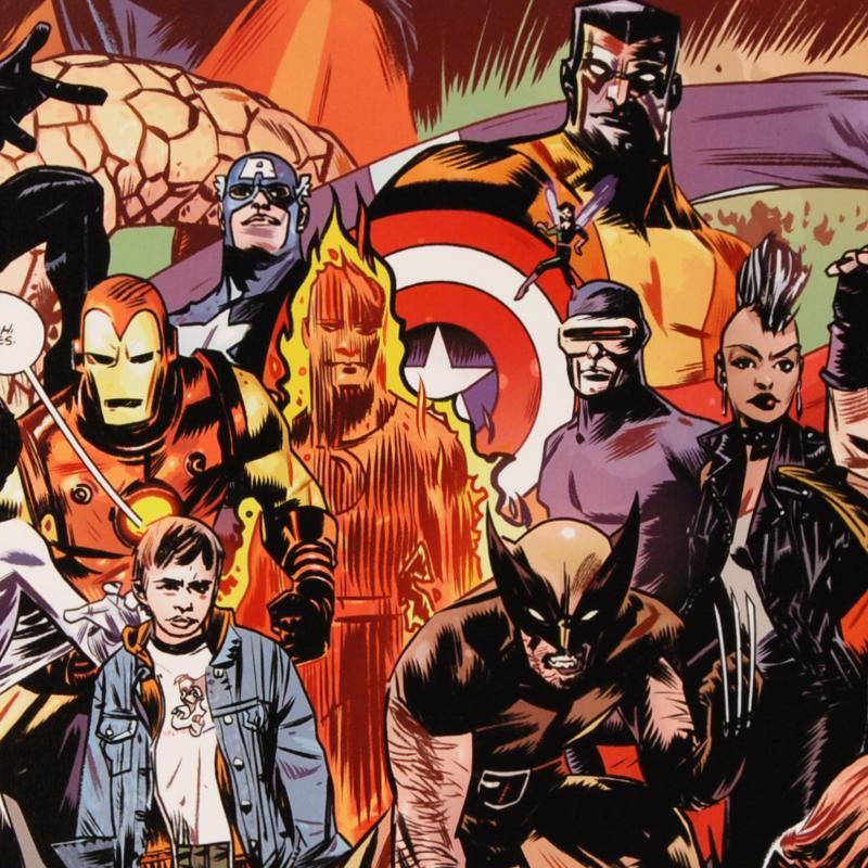 A piece of comic book history, this limited edition, from original art by Tommy Lee Edwards, depicts a multitude of Characters from the Marvel Universe. Tommy Lee Edwards is an American illustrator. Edwards' varied portfolio includes works created in the realm of comics, video-games, books, advertising, film, and animation. He has worked on film projects, providing the style guides for films like Batman Begins, Superman Returns and Men in Black II as well as providing movie posters, illustrations for role-playing games and other promotional or licensing work. "Marvel 1985 #6" is an extremely limited edition giclee on canvas by Tommy Lee Edwards presented by Marvel Comics, hand signed by the Great Stan Lee (1922-2018) and numbered out of only 10! This piece has been custom framed and ready to hang. Includes Certificate of Authenticity! Measures approx. 31" x 25" (with frame); 24" x 18" (image).