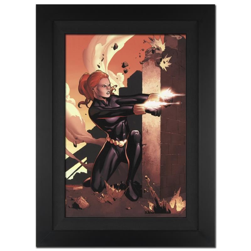 A piece of comic book history, this limited edition, from original art by Clayton Henry, depicts an epic image of the Black Widow. Artistic from an early age, Clayton Henry often uses comic books as his inspiration. After working on the independent comics Nine Rings Of Wu-Tang and Area 52, Marvel hired Henry to work on art for the X-Men franchise, among others. "Marvel Adventures: Super Heroes #10" is an extremely limited edition giclee on canvas by Clayton Henry presented by Marvel Comics, hand signed by the Great Stan Lee (1922-2018) and numbered out of only 10! This piece comes custom framed and ready to hang. Includes Certificate of Authenticity! Measures approx. 25" x 34" (with frame); 18" x 27" (image).