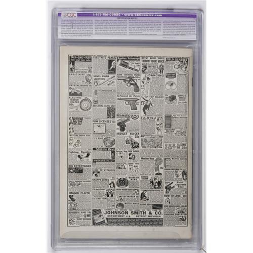 This issue is ranked as the third-most valuable comic of all for good reason, and in fact for years and years, it held the #1 spot in Overstreet's ranking. It's the first Timely comic, and it has the first newsstand appearances of both the Human Torch and the Angel. The famous cover is by Frank R. Paul. You'll often hear old-school collectors calling this <B>Marvel Mystery</B></I> #1, and with good reason, since the series, the company's flagship magazine, became <B>Marvel Mystery Comics</B></I> starting with issue #2. Also worth noting is that the blacked-out "Oct." at upper right with "Nov." printed on top is common to most copies of this issue. This copy hails from the Kansas City collection, which also had a very nice <B>Captain America Comics</B></I> #1. CGC notes, "Restoration includes: tear seals to cover, cover cleaned and reinforced." Overstreet 2006 GD 2.0 value = $21,000; VG 4.0 value = $42,000; FN 6.0 value = $63,000.<BR><BR><b>Shipping:</b> Slabbed Comic (<a target="_blank" href="http://www.heritageauctions.com/common/shipping.php">view shipping information</a>)