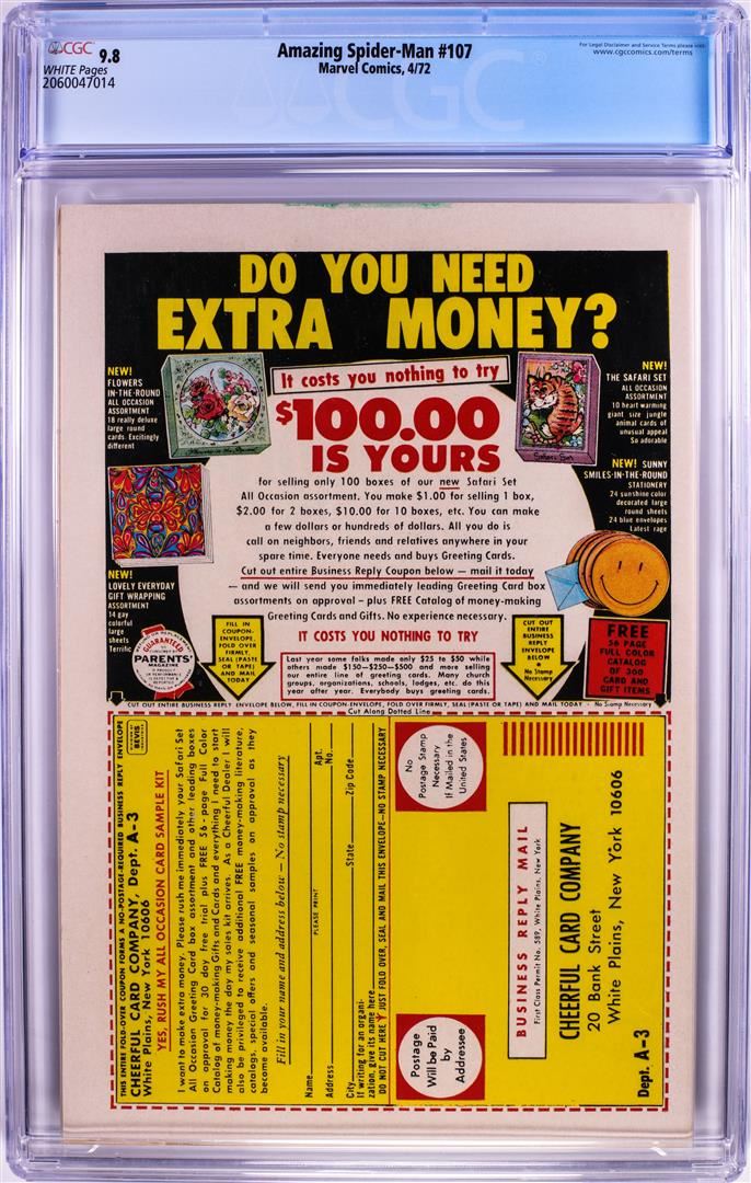 One Marvel Comics Amazing Spider-Man #107 Comic Book 4/72 CGC 9.8.