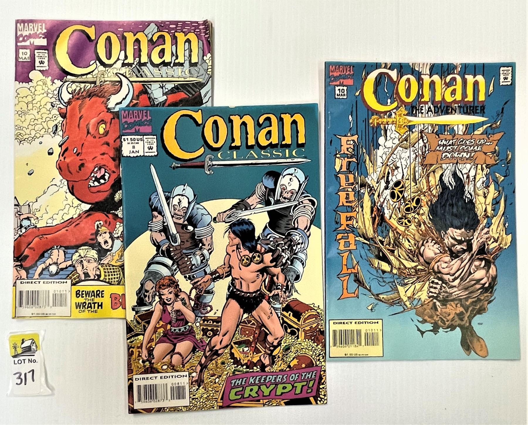 Marvel Comics, Conan, THREE Comics. Damage on back of one, see photo.