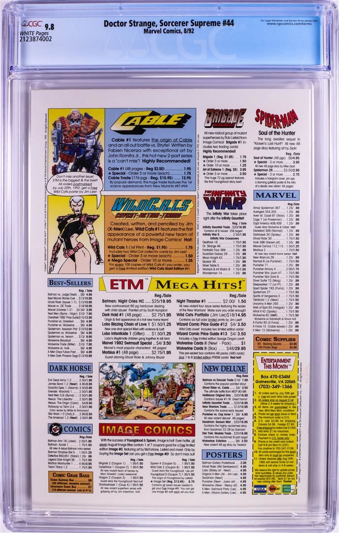 One Marvel Comics Doctor Strange Sorcerer Supreme #44 Comic Book 8/92 CGC 9.8.