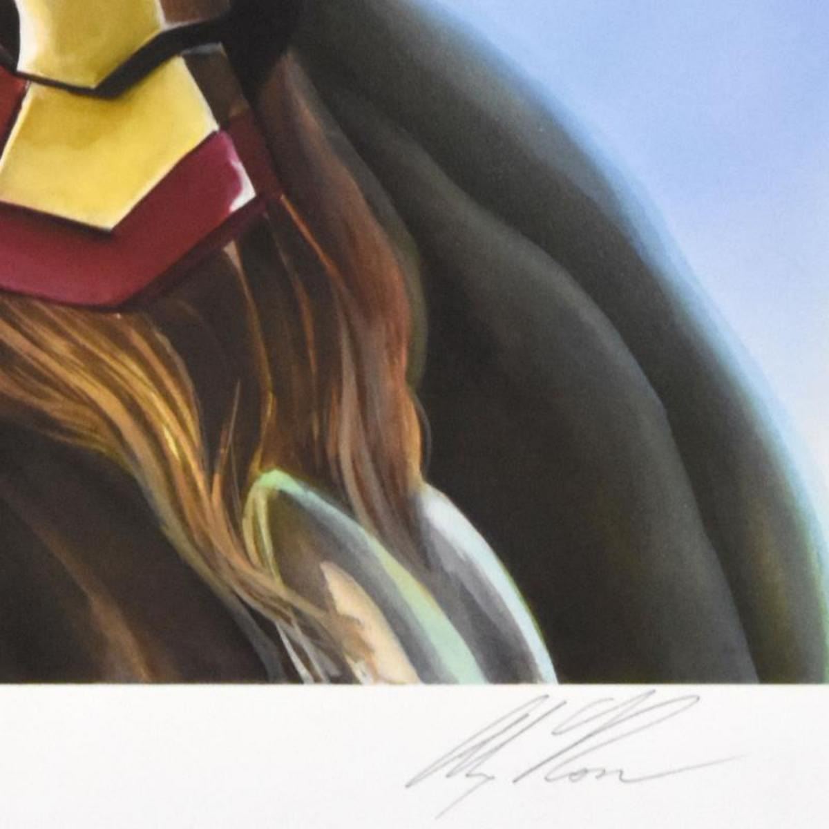 Alex Ross is acclaimed as one of the leading illustrators in comic art today. His realistic, human depictions of classic comic book characters for Marvel has cemented his position in the pantheon of comic book and contemporary pop culture illustrators. "First Avengers" is a limited edition giclee on paper by Alex Ross and presented by Marvel Comics. This piece is numbered and hand signed by the artist. Includes Letter of Authenticity. Measures approx. 17" x 24" (border), 13" x 20" (image). Reference #: 255459