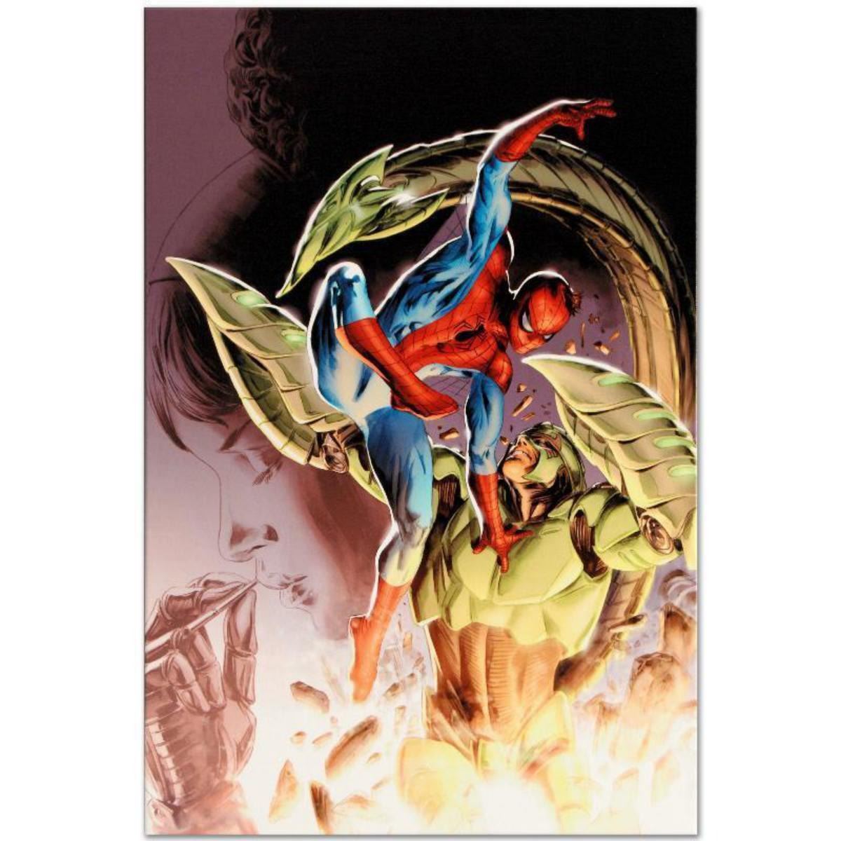 A piece of comic book history, this limited edition, from original art by Doug Braithwaite, depicts Spider-Man and Scorpion. Doug Braithwaite started out working on British comics, like 2000 AD and A1, but is best known for his Marvel Comics work on the Earth X sequels, Universe X and Paradise X, as well as The Punisher Kills, the Marvel Universe, and Punisher: MAX. "Heroes For Hire #8" is a limited edition giclee on canvas by Doug Braithwaite presented by Marvel Comics. This piece comes gallery wrapped. Includes Certificate of Authenticity! Measures approx. 18" x 27" (image); 1.5" (depth). Reference #: 236848.