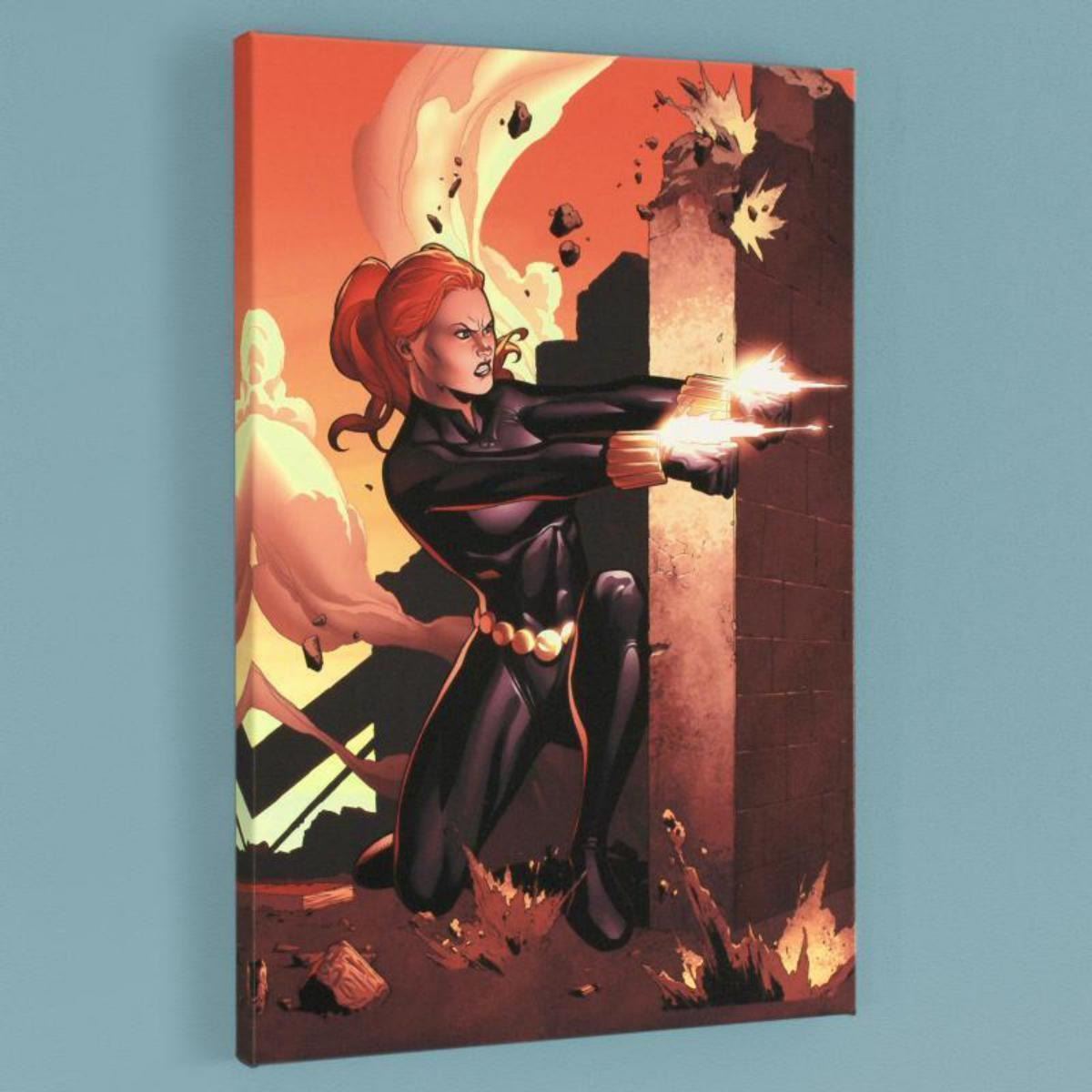 A piece of comic book history, this limited edition, from original art by Clayton Henry, depicts an epic image of the Black Widow. Artistic from an early age, Clayton Henry often uses comic books as his inspiration. After working on the independent comics Nine Rings Of Wu-Tang and Area 52, Marvel hired Henry to work on art for the X-Men franchise, among others. "Marvel Adventures: Super Heroes #10" is a limited edition numbered giclee on stretched canvas by Clayton Henry presented by Marvel Comics. This piece comes gallery wrapped. Includes Certificate of Authenticity! Measure approx. 18" x 27" (image); 1.5" (depth). Reference #: 236828.
