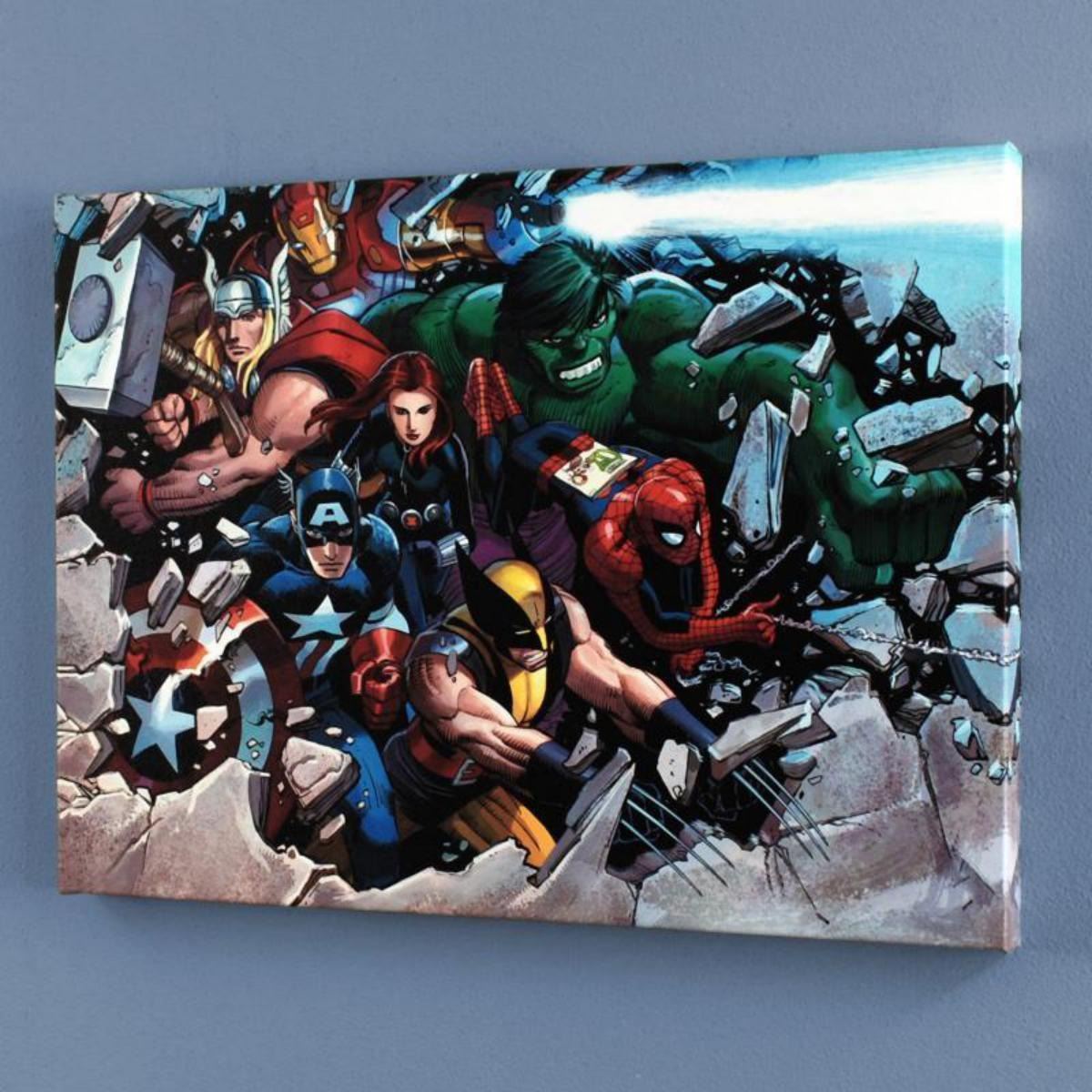A piece of comic book history, this limited edition, from original art by John Romita Jr., depicts Thor, Captain America, Iron Man, Black Widow, Wolverine, Hulk and Spider-Man. John Romita Jr. began his career at Marvel UK, doing sketches for covers of reprints. His American debut was with a six-page story entitled "Chaos at the Coffee Bean!" in The Amazing Spider-Man Annual #11 in 1977. His early popularity began with his run on Iron Man in 1978. Since then he has worked on many other comic book series including Thor, Fantastic Four, Daredevil and X-Men. "Son of Marvel: Reading Chronology" is a limited edition giclee on canvas by John Romita Jr. presented by Marvel Comics! This piece comes gallery wrapped. Includes Certificate of Authenticity! Measures approx. 24" x 18" (image). Reference #: 236901.