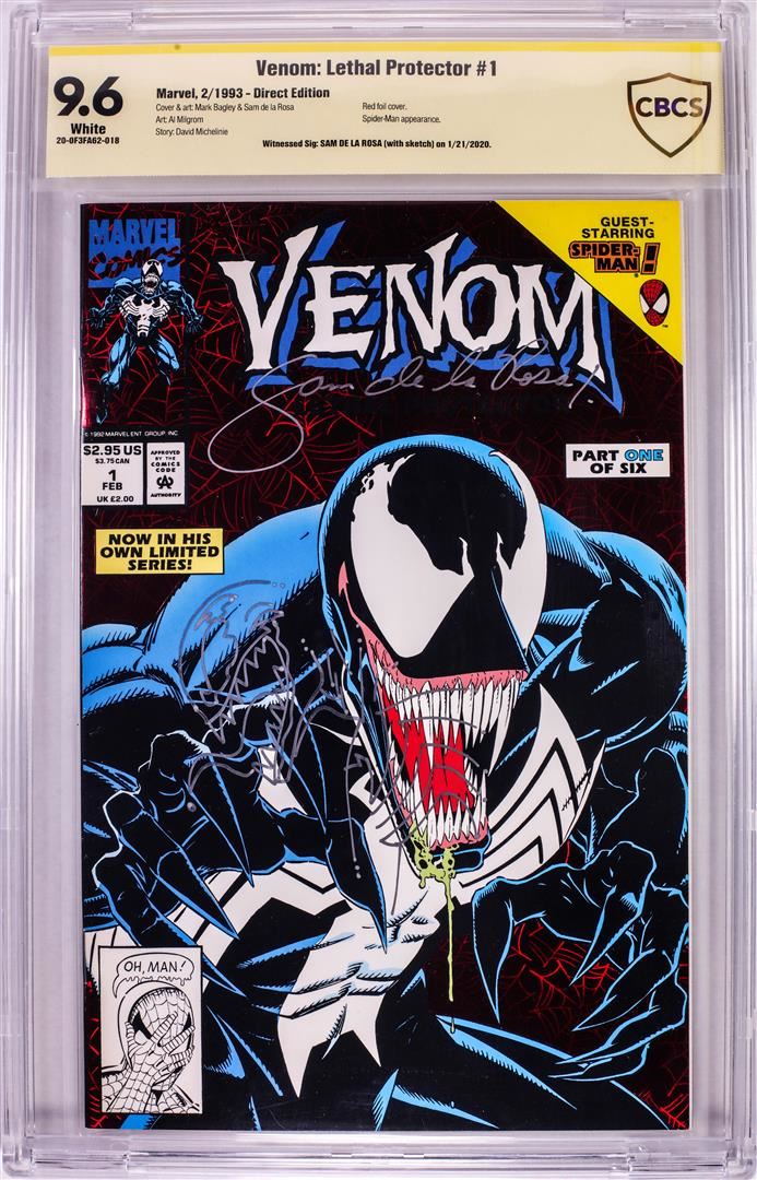 One Marvel Comics Venom: Lethal Protector #1 Comic Book 2/1993 CBCS 9.6 White Signed And Sketched By Sam De La Rosa.