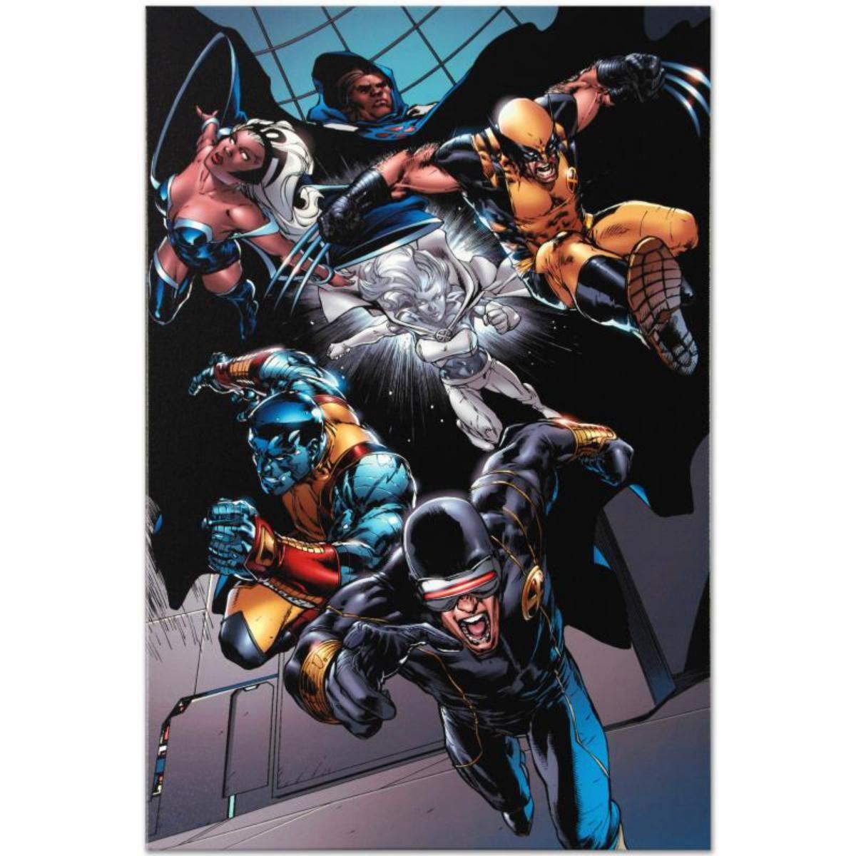 A piece of comic book history, this limited edition, from original art by Carlo Pagulayan, depicts Cyclops, Colossus, Wolverine, Storm, Emma Frost, and Cloak. Carlo Pagulayan (born June 24, 1978) is a freelance Filipino comic book artist. Pagulayan began his career in the comics business with a 3-page sequential for Dark Horse Comics, written by Doug Petrie, to aid the victims of the 9-11 attacks, and as a tribute to the fallen World Trade Center Twin Towers (2001). He has since had assignments from a few publishers, including Elektra and The Incredible Hulk for Marvel Comics. "X-Men vs. Agents of Atlas #1" is a limited edition numbered giclee on canvas by Carlo Pagulayan presented by Marvel Comics. This piece comes gallery wrapped. Includes Certificate of Authenticity! Measures approx. 18" x 27" (image). This item requires special handling and may have a longer than usual turnaround. Reference #: 236884