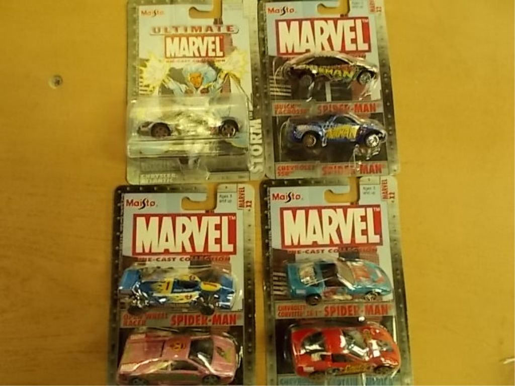 Marvel Die Cast Cars (7) Maisto Marvel Die-Cast Collection 4-Spiderman, 1-Green Hornet, 1-Captain America, 1-Storm