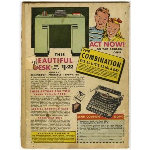 The conclusion of the epic battle between the Human Torch and the Sub-Mariner is the highlight of this issue. Terry Vance, Schoolboy Sleuth, begins his long run here. This issue is missing the centerfold, which affects the Electro story. Overstreet 2006 GD 2.0 value = $848.<BR><BR><b>Shipping:</b> Un-Slabbed Comic (<a target="_blank" href="http://www.heritageauctions.com/common/shipping.php">view shipping information</a>)