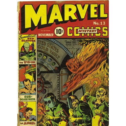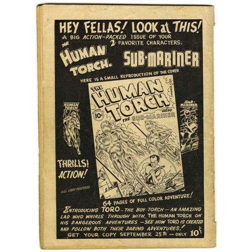 That Human Torch -- he just can't resist blasting through steel walls! This issue introduced the Vision, with great art by Joe Simon and Jack Kirby; elsewhere, Sub-Mariner dons a new costume, and the back cover is a full-page ad for the first issue of <B>The Human Torch</B></I>. And with this unslabbed copy, you can actually open it up and <I>read</B></I> the darned thing! Overstreet 2006 VG 4.0 value = $1,006.<BR><BR><b>Shipping:</b> Un-Slabbed Comic (<a target="_blank" href="http://www.heritageauctions.com/common/shipping.php">view shipping information</a>)