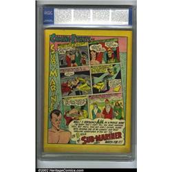 Marvel Mystery Comics #26 (Timely, 1941) CGC FN+ 6.5 Cream to off-white pages. One of the best Schomburg covers of Marvel Mystery, this showing the Sub-Mariner tearing apart a Nazi plane in mid-air. Even Schomburg's more simplistic covers packed a wallop. A minor spine roll and 1/4" tear on the back cover are the noticeable defects on this pretty copy. Overstreet 2002 FN 6.0 value = $519. Important notice: We expect to be auctioning lots at the rate of 200-250 per hour. Sometimes eBay Premier live bid software cannot keep up with that pace, so we strongly recommend that you place a realistic proxy bid now as insurance to avoid disappointment. Also please note that all Heritage/CAA lots purchased through eBay Premier carry a 20% Buyer's Premium.