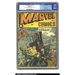 Marvel Mystery Comics #4 (Timely, 1940) CGC GD/VG 3.0 Cream to off-white pages. For all of you underbidders, here's another chance at Marvel #4, and at a much more affordable price. There are no serious structural defects on this copy; the spine and edges are fairly sharp, there are no missing pieces or tears, and the pages are solid. Rusty staples, a small piece of tape at the top spine and some cover fading are the contributors to the book's grade. Overstreet 2002 GD 2.0 value = $1,000; FN 6.0 value = $3,000. Important notice: We expect to be auctioning lots at the rate of 200-250 per hour. Sometimes eBay Premier live bid software cannot keep up with that pace, so we strongly recommend that you place a realistic proxy bid now as insurance to avoid disappointment. Also please note that all Heritage/CAA lots purchased through eBay Premier carry a 20% Buyer's Premium. Please make sure you read the Terms and Conditions.
