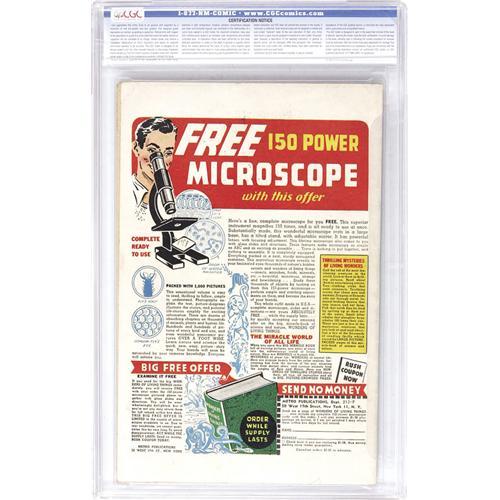 <B>Marvel Mystery Comics #60 (Timely, 1944) CGC VF 8.0 Off-white to white pages.</B></I> This issue's rip-roarin' Human Torch and Toro cover is attributed to Alex Schomburg by many. Inside the ish, the Torch is joined by the Sub-Mariner, the Angel, the Patriot, and Miss America. Overstreet 2006 VF 8.0 value = $856. CGC census 10/06: 1 in 8.0, 2 higher.<BR><BR><b>Shipping:</b> Slabbed Comic (<a target="_blank" href="http://www.heritageauctions.com/common/shipping.php">view shipping information</a>)