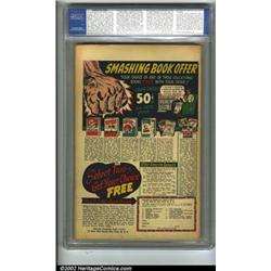Marvel Mystery Comics #62 (Timely, 1945) CGC VF- 7.5 Off-white pages. The villains on this Schomburg cover are neither Nazi nor Japanese, but rather a combination of both, incorporating the hoods with the giant pointed teeth, and the huge beast-like executioner wielding his mammoth axe. But Torch does not discriminate, as long as there are victims to rescue. Tight and sharp with great colors, this copy has a small tear at the top spine, and light wear along the top edge of the back cover. Overstreet 2002 VF 8.0 value = $713. Important notice: We expect to be auctioning lots at the rate of 200-250 per hour. Sometimes eBay Premier live bid software cannot keep up with that pace, so we strongly recommend that you place a realistic proxy bid now as insurance to avoid disappointment. Also please note that all Heritage/CAA lots purchased through eBay Premier carry a 20% Buyer's Premium.