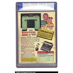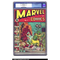 Marvel Mystery Comics #7 Recil Macon pedigree (Timely, 1940) CGC VF- 7.5 Off-white pages. Schomburg honed his style on these early Marvels, which evolved into his famous "busy" covers that have made the later issues of the run so popular. This copy, hailing from the Recil Macon collection, has Recil's name and "Mid-C" written on the cover. The book appears VF or better, but was downgraded due to some light staining on the back cover. Still, a gorgeous, scarce book. Overstreet 2002 VF 8.0 value = $3,750. Important notice: We expect to be auctioning lots at the rate of 200-250 per hour. Sometimes eBay Premier live bid software cannot keep up with that pace, so we strongly recommend that you place a realistic proxy bid now as insurance to avoid disappointment. Also please note that all Heritage/CAA lots purchased through eBay Premier carry a 20% Buyer's Premium. Please make sure you read the Terms and Conditions.