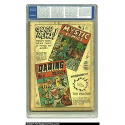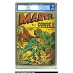 Marvel Mystery Comics #8 (Timely, 1940) CGC GD- 1.8 Slightly brittle pages. This low-grade, but classic issue has the first part of the three-part Human Torch versus Sub-Mariner battle story. It also has stories featuring the Angel, Electro, Ka-Zar, and the Masked Raider. Artistic contributors include Carl Burgos, Paul Gustavson, and Bill Everett, who also did this monstrous cover. Sure, this copy isn't high-grade, but - hey! It's so cool, you know you want it. CGC notes, "3 center wraps detached." Overstreet 2003 GD 2.0 value = $1,000. Important notice: Heritage usually auctions material at the rate of 200-250 lots per hour. On some occasions eBay Live bid software or the Internet may not be able to keep up with the pace of the auction. We recommend placing a realistic absentee bid now as insurance to avoid disappointment. Occasionally the auctioneer may eliminate or reject an eBay Live bid, and the auctioneer may also reopen a lot after the close of the eBay live bidding (usually because we missed an audience bid), and may reject your bid even if it shows you as the winning bidder. By bidding via eBay Live, you agree that Heritage may award the lot to another bidder at its sole discretion under the circumstances described above or any other reasonable circumstances. Also please note that all Heritage lots purchased through eBay Live carry a 20% Buyer's Premium. Please make sure you read the Terms and Conditions before you bid.