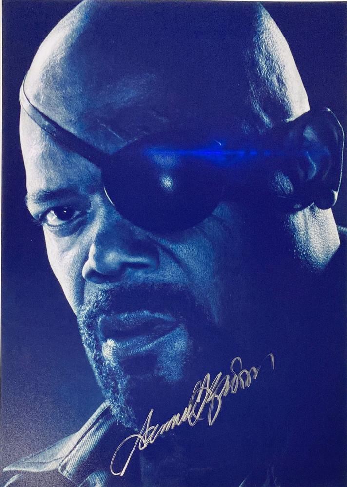 Marvel Nick Fury Samuel L. Jackson facsimile signed movie photo. 8x10 inches. This item is a reprint of an original autograph