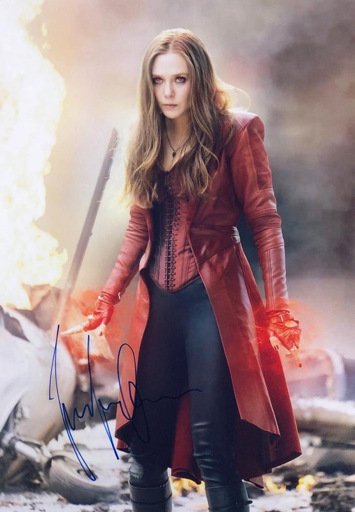Marvel Scarlet Witch Elizabeth Olsen facsimile signed movie photo. 8x10 inches. This item is a reprint of an original autograph