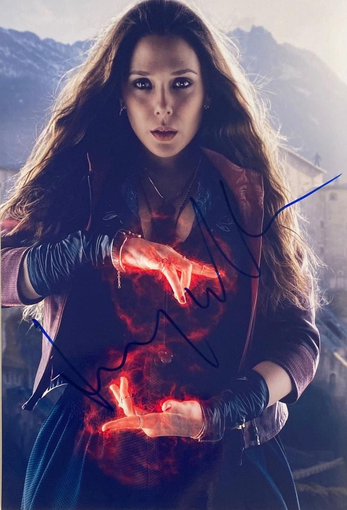Marvel Scarlet Witch Elizabeth Olsen facsimile signed movie photo. 8x10 inches. This item is a reprint of an original autograph