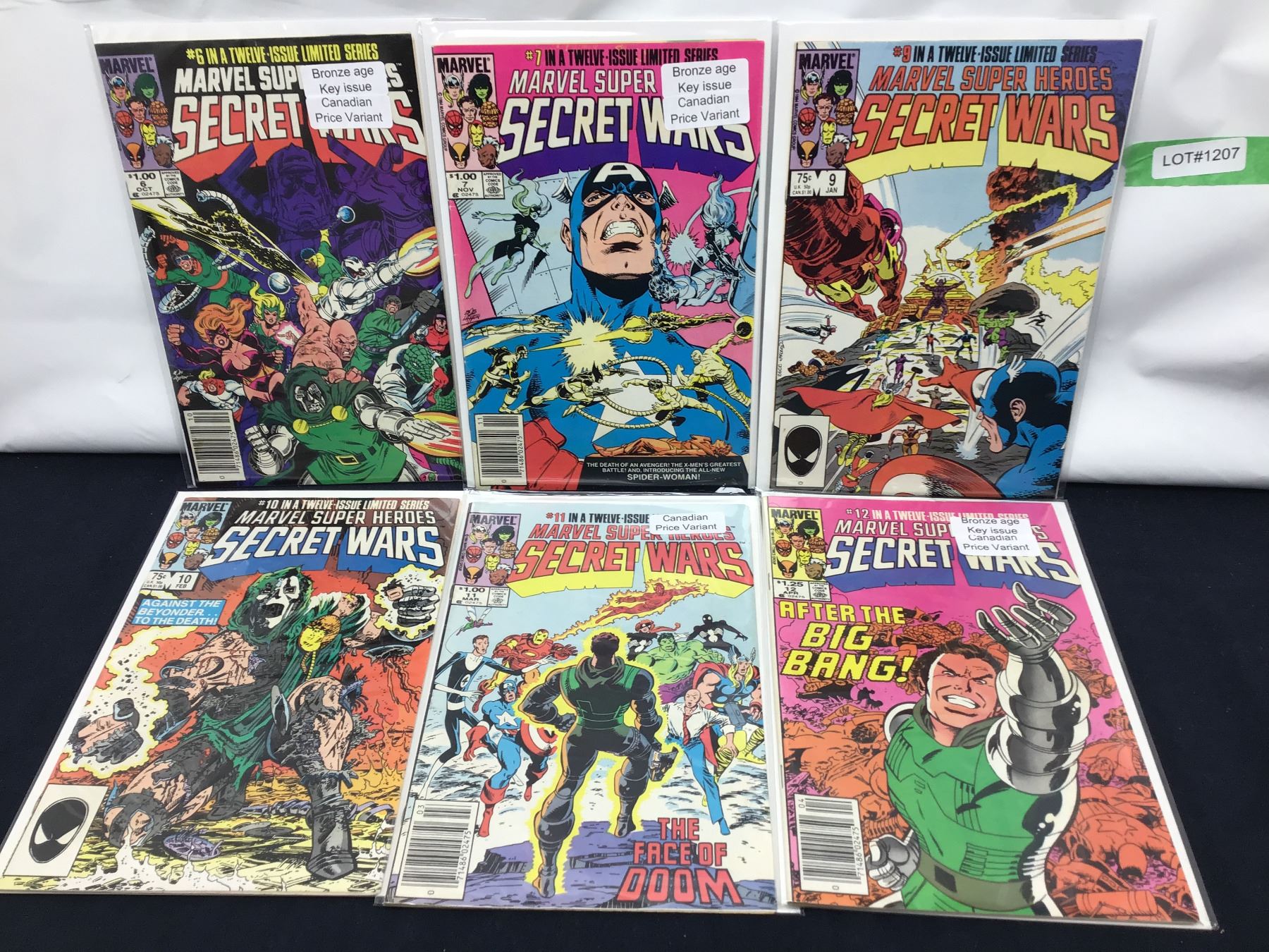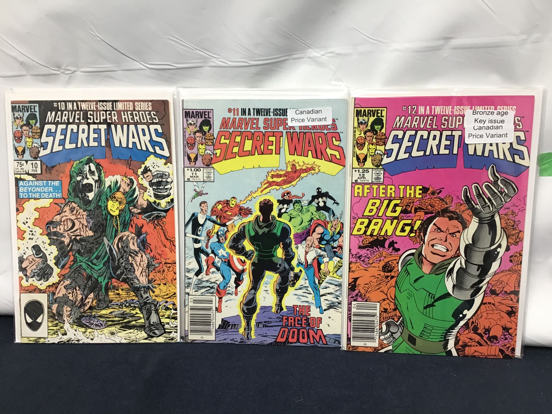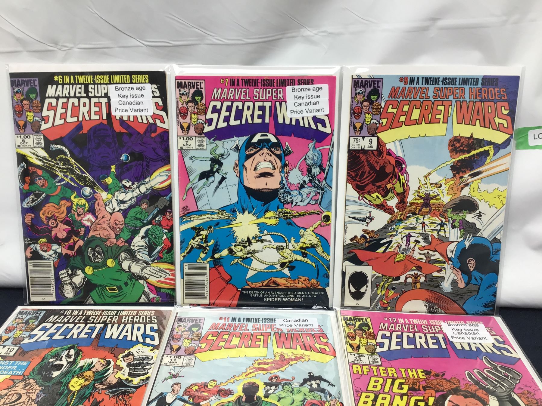 Marvel Secret Wars KEYs #6 1st Cameo Julia Carpenter (Spider-Woman) CPV, #7 1st Appearance Spider-Woman (Julia Carpenter) CPV, #12 She Hulk joins the Fantastic Four CPV, #11 Canadian Price Variant (CPV)
