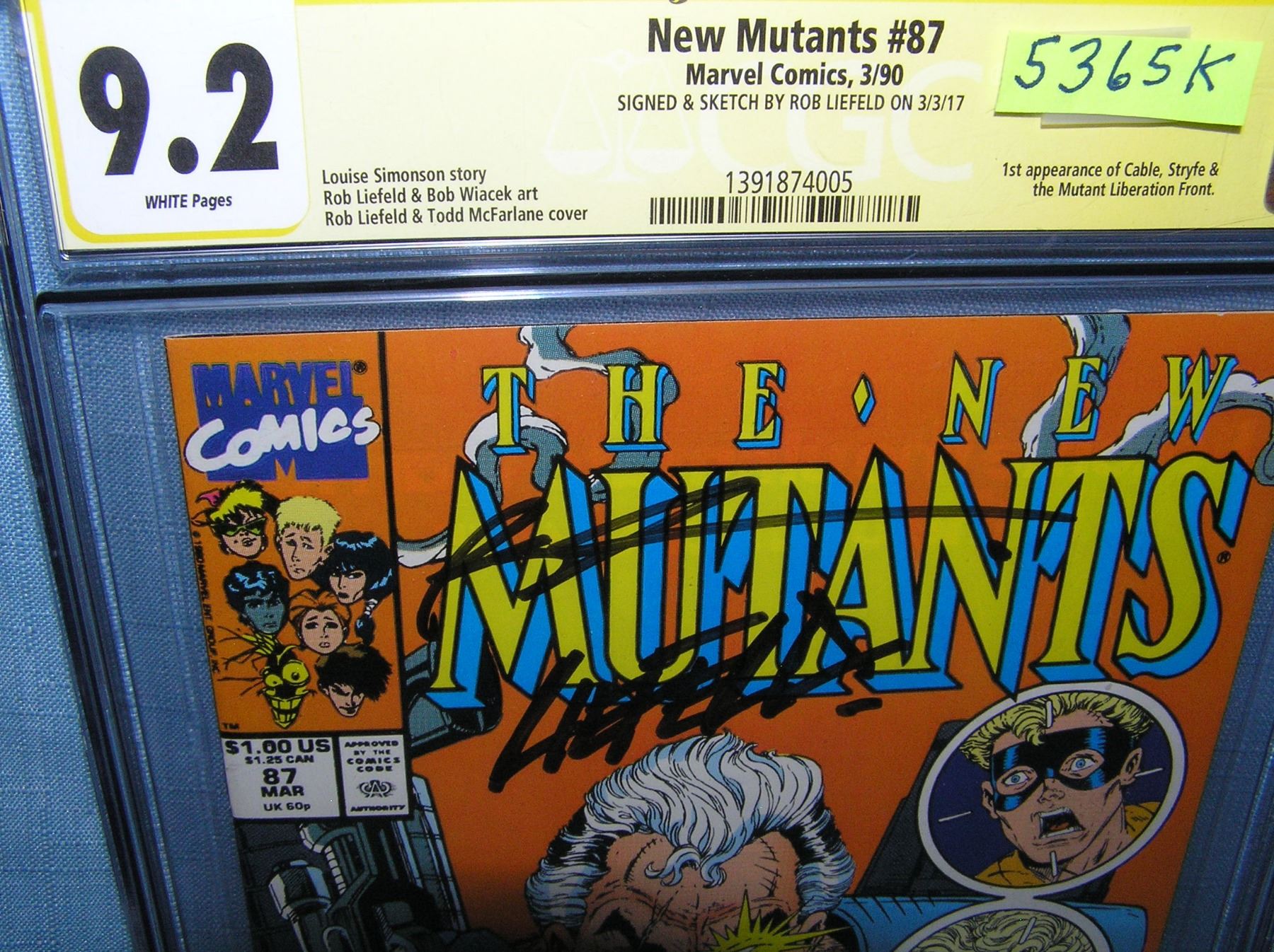 Marvel The New Mutants autographed by Rob Liefeld, sketched by Liefeld and McFarland graded 9.2 includes the first appearance of Cable, scarce est. value $1100.00-$1200.00