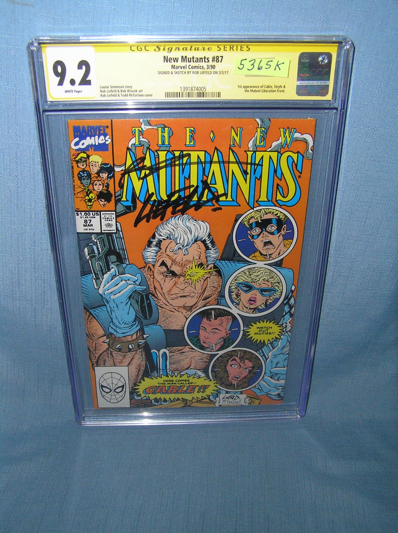 Marvel The New Mutants autographed by Rob Liefeld, sketched by Liefeld and McFarland graded 9.2 includes the first appearance of Cable, scarce est. value $1100.00-$1200.00