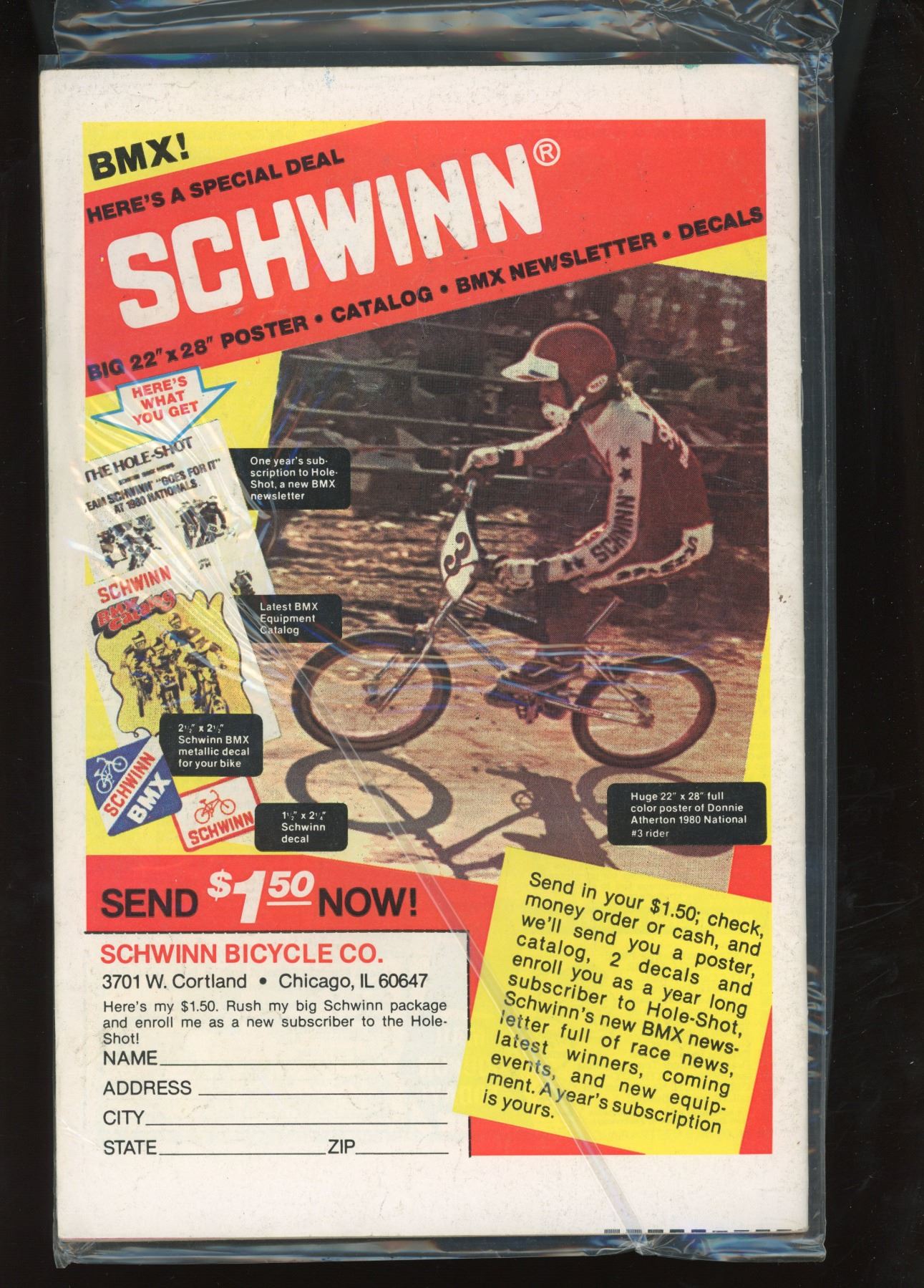 Condition: The comic is in a plastic sleeve. The cover shows some wear, with slight rounding of corners. The colors are vibrant. Back cover has a Schwinn BMX advertisement. SKU: HIBID Comics-Box09-20250529-J-250530-15
