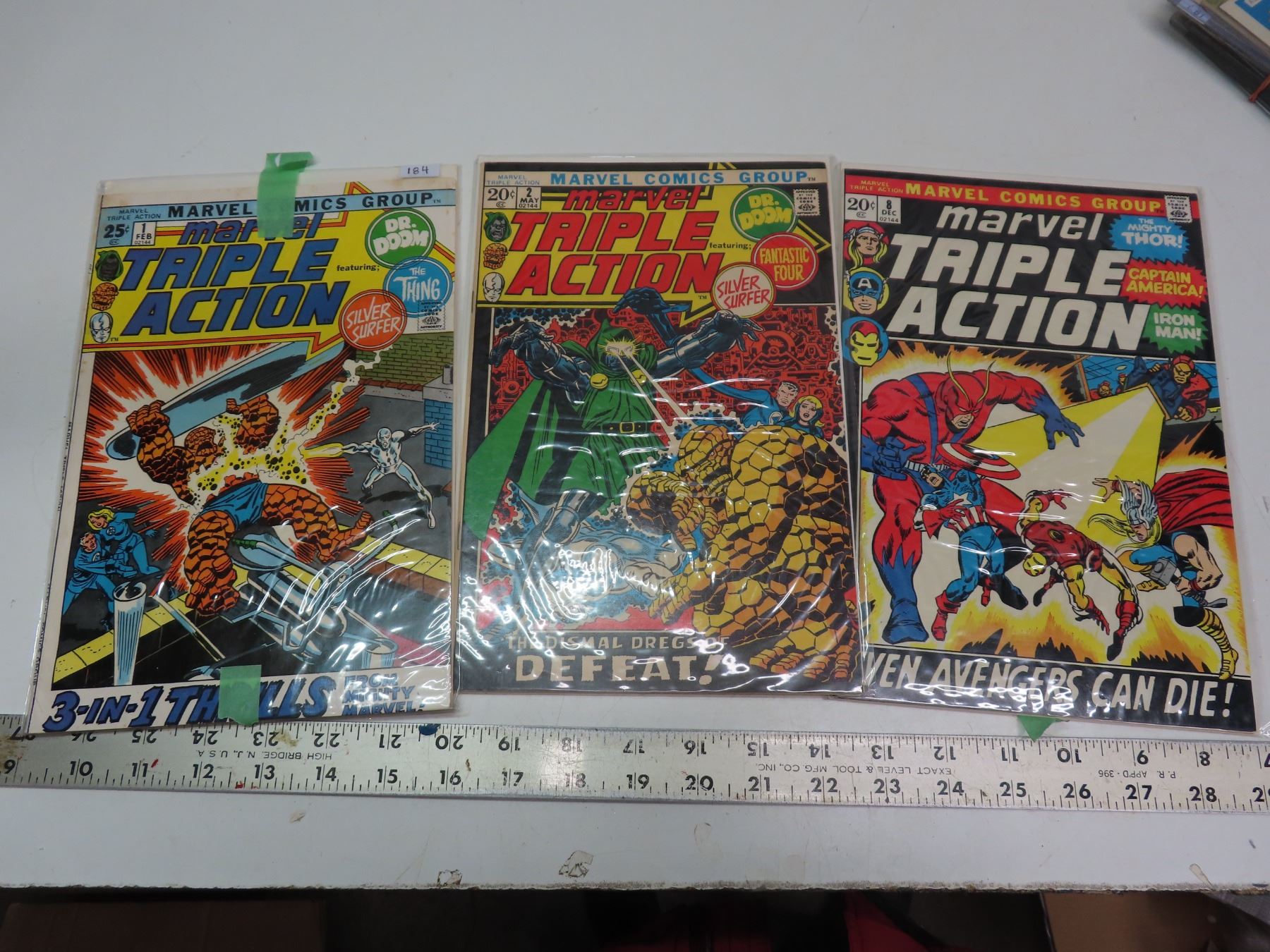 Marvel comics #2, 8 triple-action & 20c & #1 triple action 25c 1972 yr