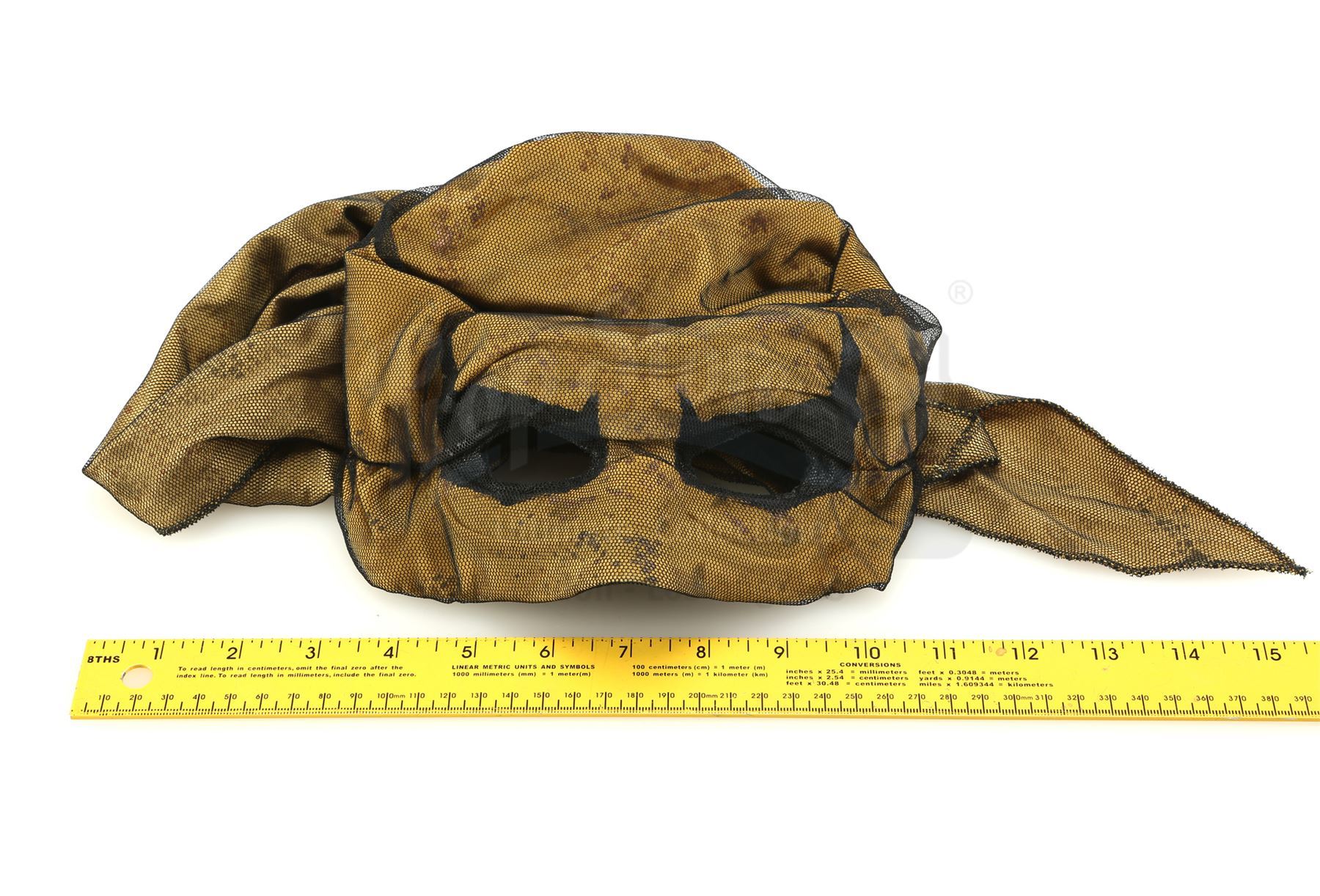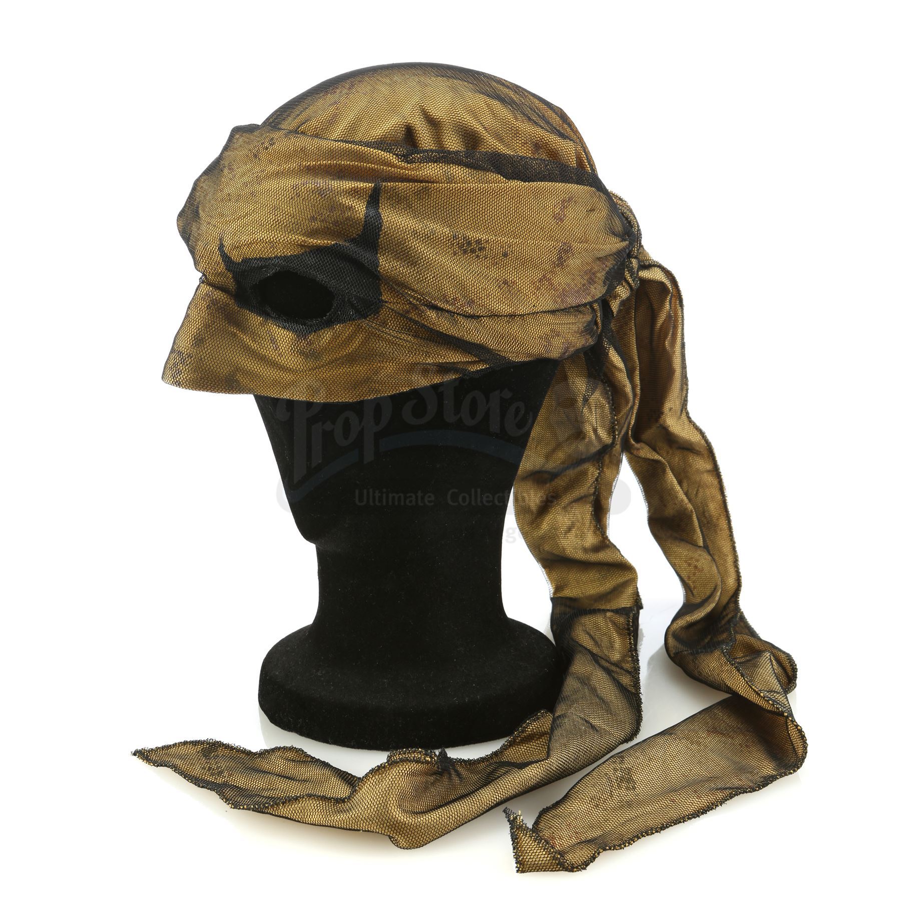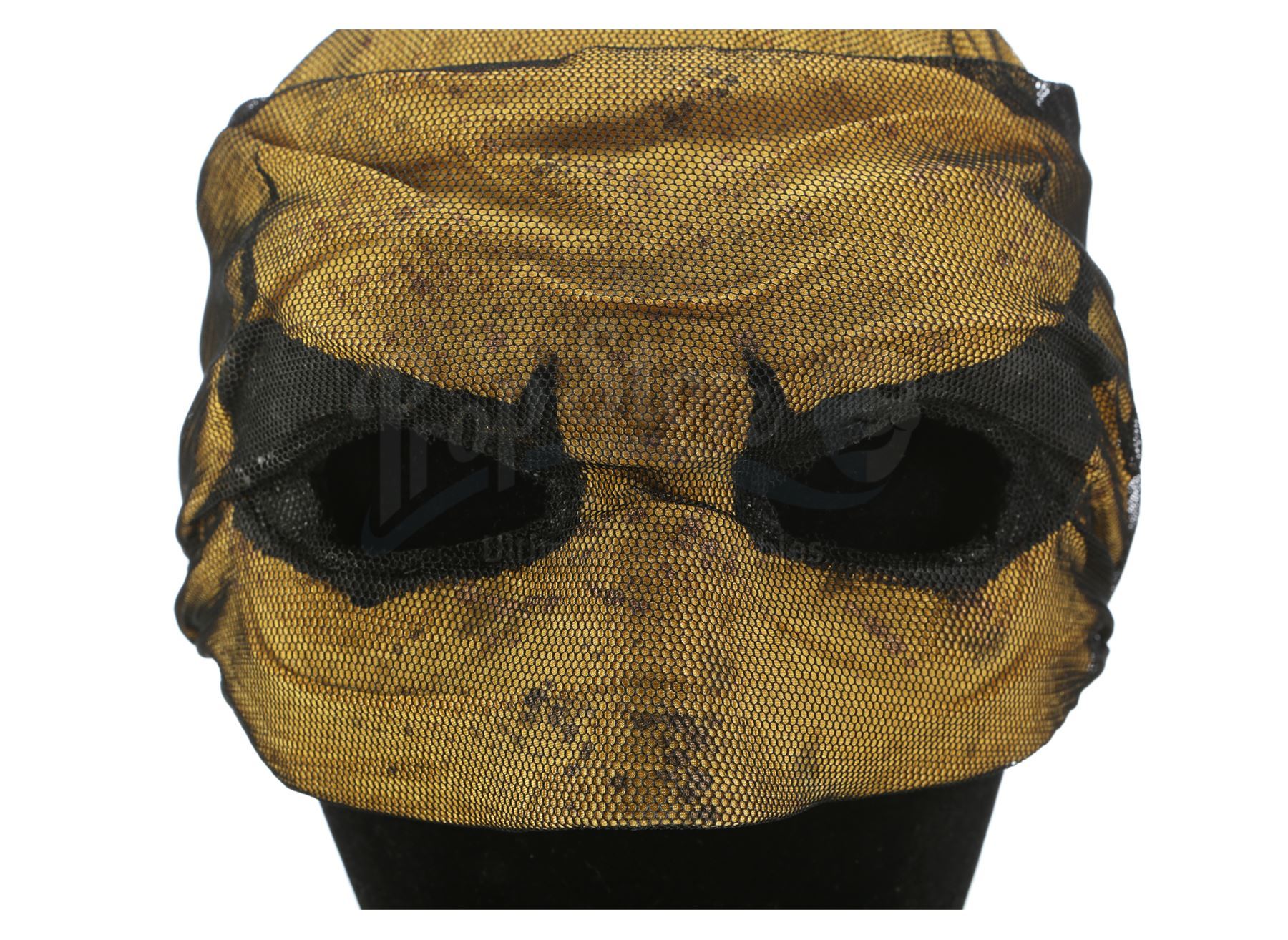 A prototype Iron Fist mask from the episode 'The City's Not for Burning' (202) of Marvel's Iron Fist. In the episode, Danny Rand wears his mask when he fights his rival, Davos, for the Iron Fist title. Unlike the masks seen on-screen, this yellow and black polyester and cotton blend production prototype features sheer black fabric mesh on the exterior. It is in good overall condition with minor wear from production.