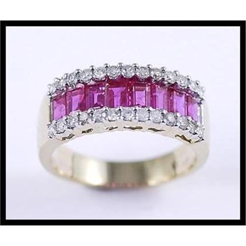 Marvelous ring with 8 rubies that weigh 1.85 carats and 26 diamonds that weigh 0.45 carats set in 18K yellow gold. The size 7 ring measures 8 millimeters (5/16 inches) wide and weighs 7.1 grams total weight.