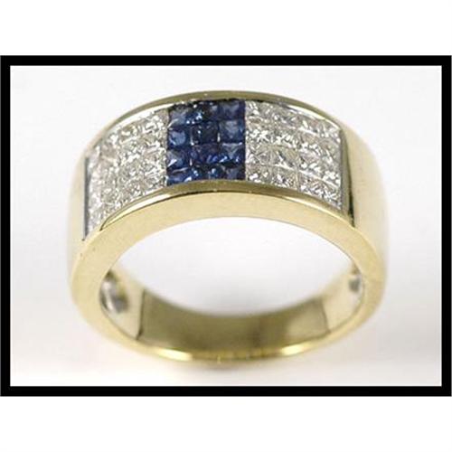 Marvelous ring with 12 side sapphires that weigh approximatley 0.40 carats and 32 side diamonds that weigh approximately 1.05 carats set in 18K yellow gold. The size 7 ring measures 22 millimeters (14/16 inches) long x 9 millimeters (3/8 inches) wide x 22 millimeters (7/8 inches) high and weighs 7.50 grams total weight.