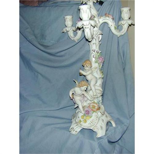 Wonderful Dresden two Piece 4 light candelabra. Wonderful winged putties, and other figures as well as heavily flowered on a a really quite massive candelabra.