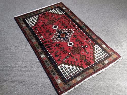 Marvelous hand woven fine quality Persian Hamedan. Size 4.11 x 3.1 feet. It's made of fine quality lamb's wool pile on cotton foundation using all natural vegetable dye. The colors and the contrast on this peace make it a irresistible masterpiece. The incorporation of white color in the central medallion, corner compositions and the sides make this rug a true eye-catching beauty. Whether on a floor or a wall, this piece makes the room shine like the mind of it's genius waves.p.p1 {margin: 0.0px 0.0px 0.0px 0.0px; font: 11.0px Calibri; color: #000000}