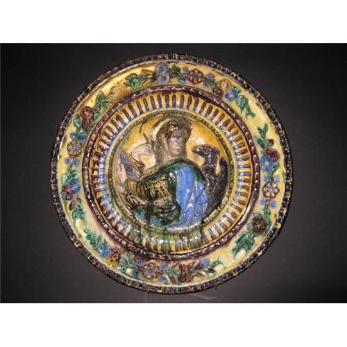 This marvelous Italian charger plate is in good condition, circa 1850. The hand-painted porcelain charger is striking with the brilliant colors used. Measurement is 17" in diameter. Please review the pictures for intricate detail. Serious inquiries are Welcome!