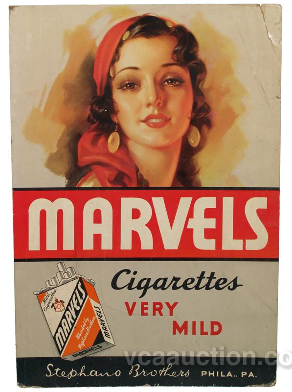 Marvels Cigarettes Cardboard Easel Back Sign - 20" x 29