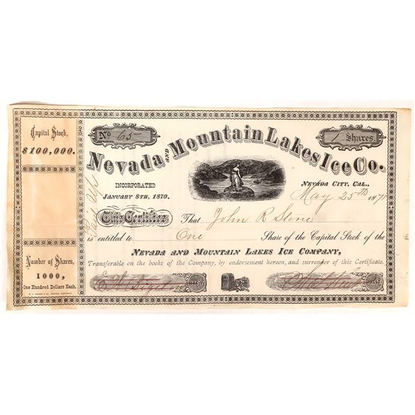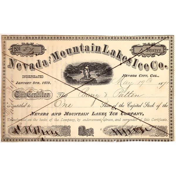 Issued 1871 Nevada and Mountain Lakes Ice stock. Ice from Boca area, near Truckee.