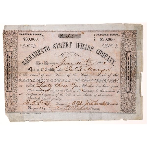 4348 - Sacramento Street Wharf Co. Stock, 1852, Xrare [174415]Holabird Western Americana Collections