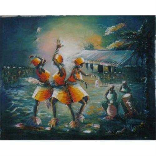 This painting exhibits the Ijaw/Itsekiri dancers that gained prominence among the Bini people of Edo State in Nigeria.