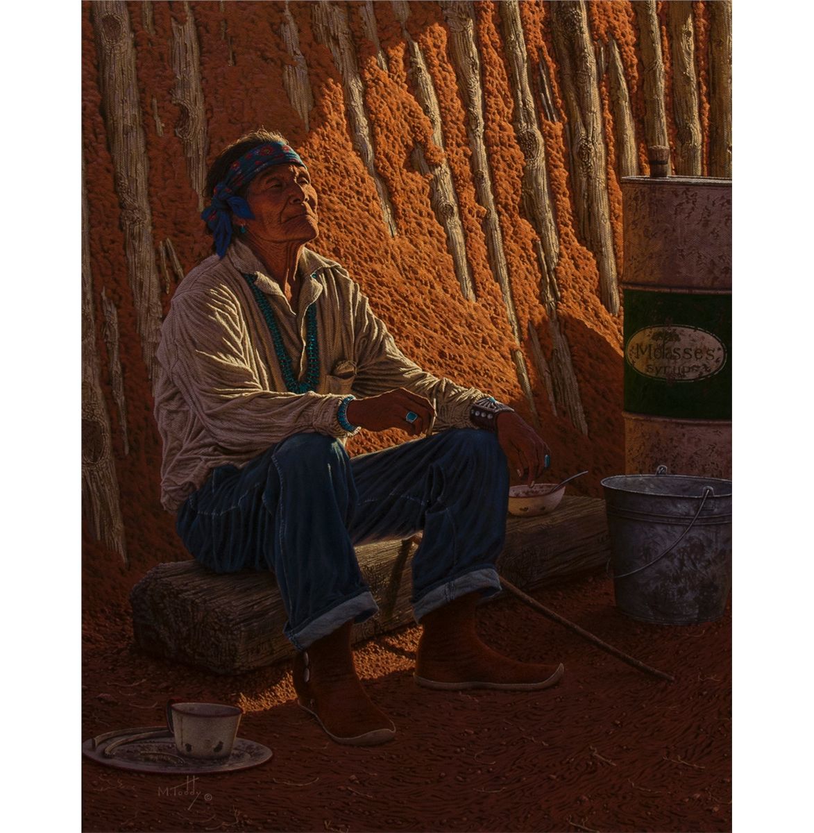 Marvin Toddy (1954 - ). Praying to the Morning Sun. 24" x 18" acrylic on canvas. Signed lower left: M. Toddy ©. Provenance: Indian River Gallery.
