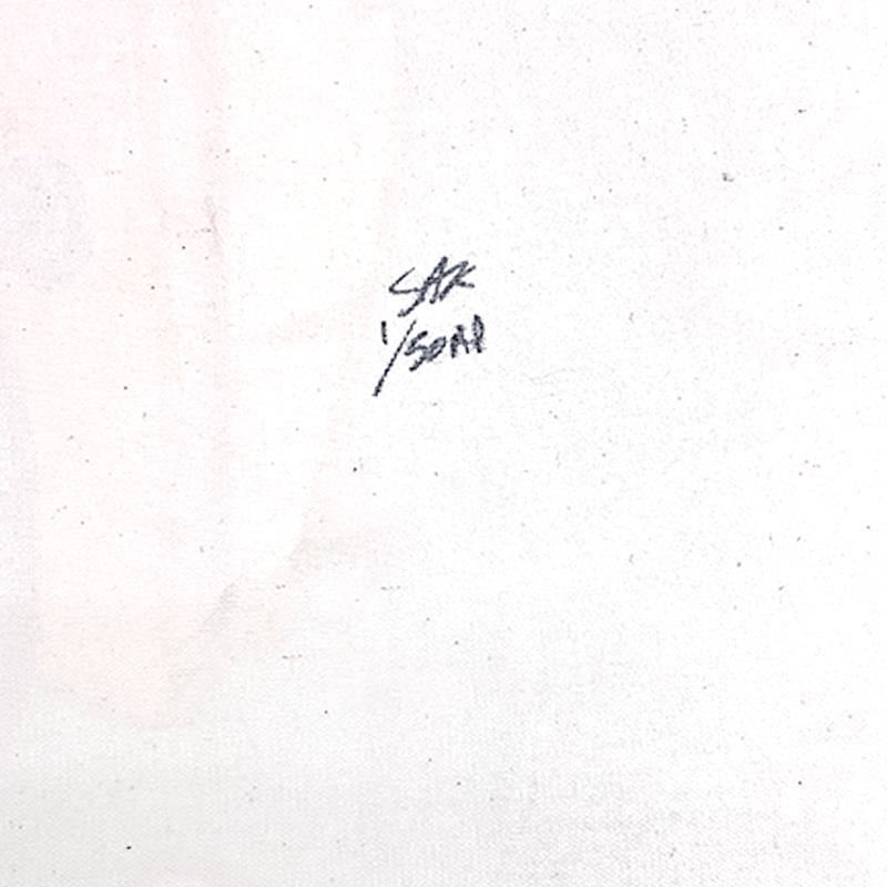 "Marvin the Martian" is a hand pulled limited edition silkscreen on canvas by Andy Warhol protege, Steve Kaufman (1960-2010). This piece is AP numbered 1/50 and hand signed inverso by the artist. Includes Letter of Authenticity. Measures approx. 22" x 22" (image). As is common with Kaufman's works, this piece may have perceived minor flaws, but is in overall good condition.