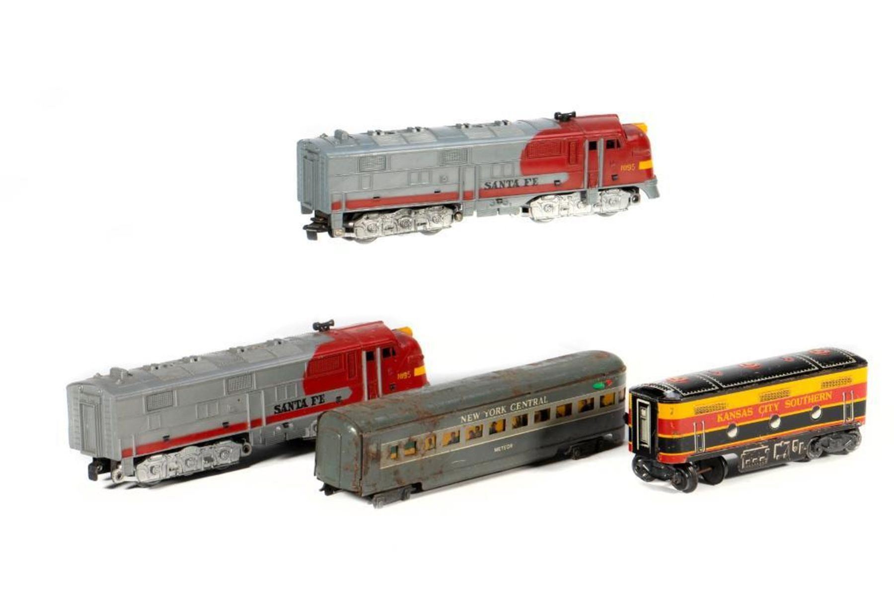 Marx 1095P Santa Fe, 1095D Santa Fe, Tin B Unit Kansas City Southern, NYC Observation Meteor