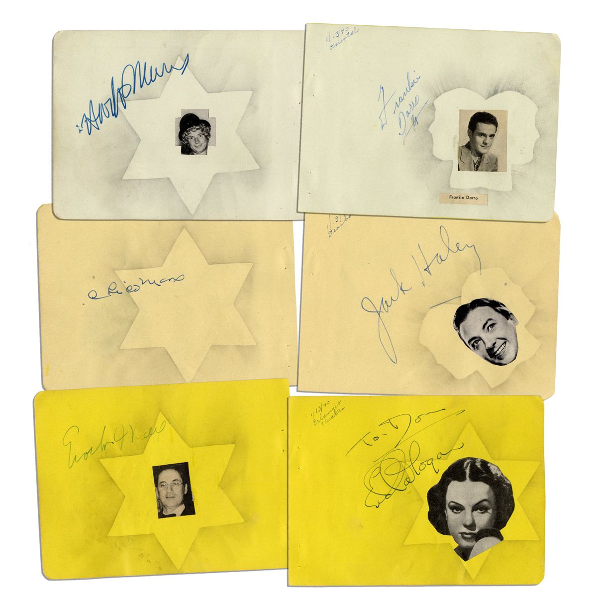 Marx Brothers 3 Signed Pages -- Each Brother Signs One Sheet -- Versos Bear Signatures of More Stars -- 6'' x 4.5'' Leaves -- Very Good