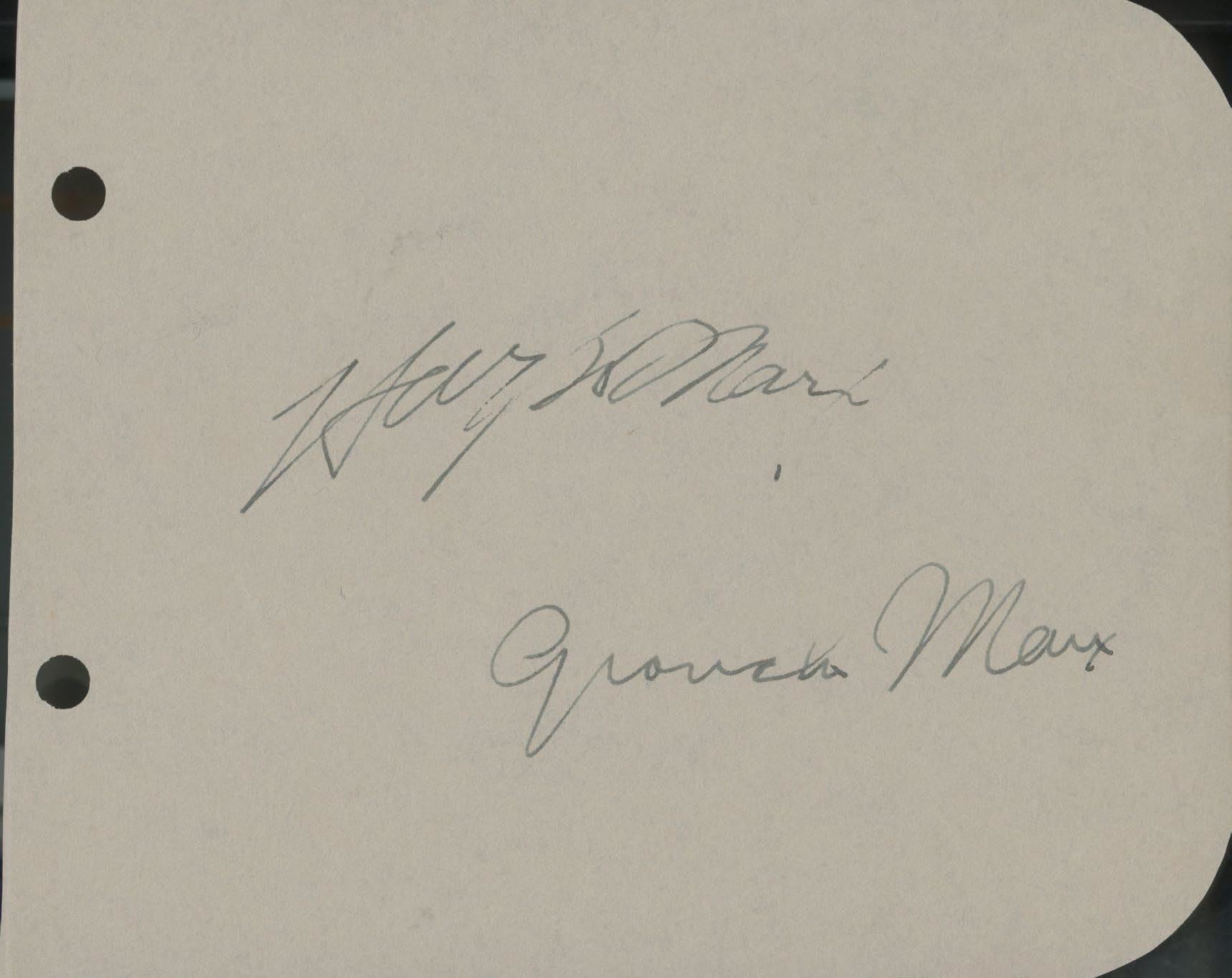 Marx Brothers original signature page autographed by Harpo Marx and Groucho Marx