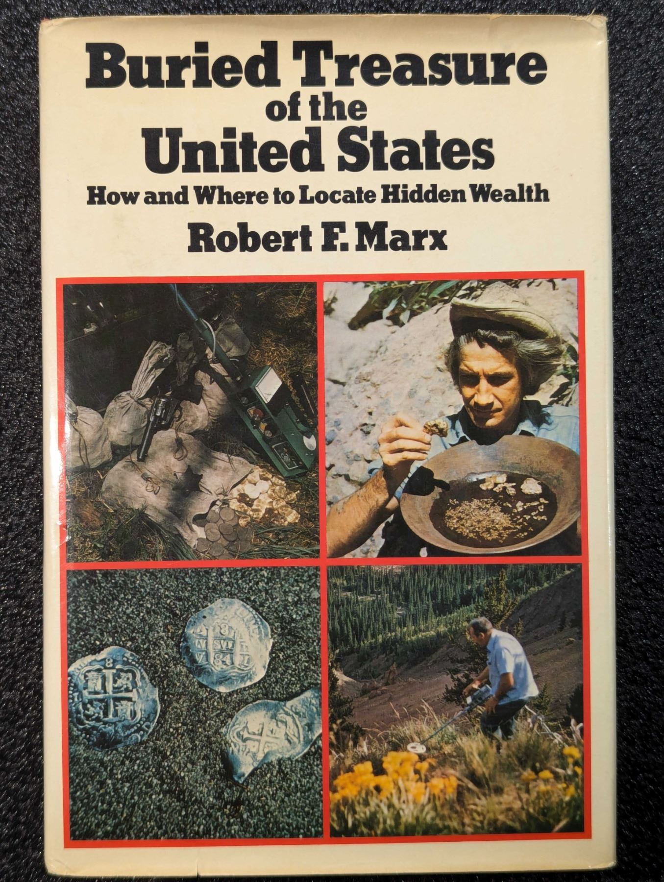 Marx, Robert F. BURIED TREASURE OF THE UNITED STATES - HOW AND WHERE TO LOCATE HIDDEN WEALTH. Bonanza Books, New York. 1980. 8vo. (10), 401, (5) pages. original red leatherette, gilt, jacket. Signed by the author. Appendices. B&w photos. English text. The David Baker Library. Very Good. This book is a basic manual for all treasure hunters. The author explains in detail how to locate hidden wealth and where these treasures are buried. More than half this book contains a comprehensive state-by-state listing of potential treasure sites. Chapters cover the who, what, when, and why of treasure hunting, historical background, the law, equipment and more. Lot weight: 1 lbs 11oz. Subject(s): Buried Treasure, Treasure Hunting.