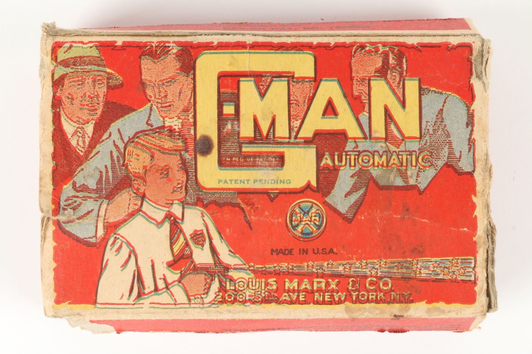 American. 1950s. Offered in its original, graphic box. 4.5" x 3" x 1". 100-200.